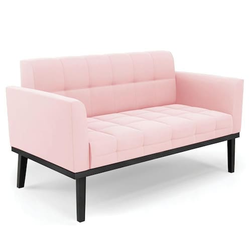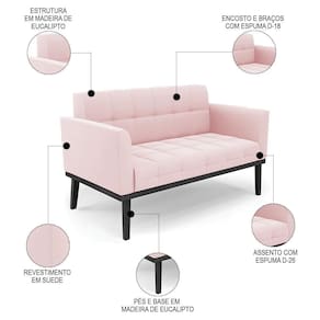 Querida por muitos pela beleza e conforto que proporciona, sua versatilidade dá a liberdade de poder usar na sua Sala De Estar, recepção e onde mais desejar! Você vai adorar o Sofá Namoradeira Base Madeira Preto Ana Suede Rosa Bebê, da Ibiza!