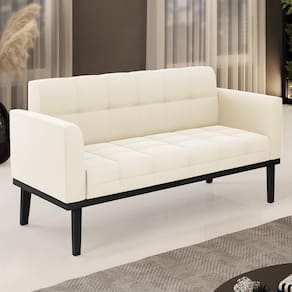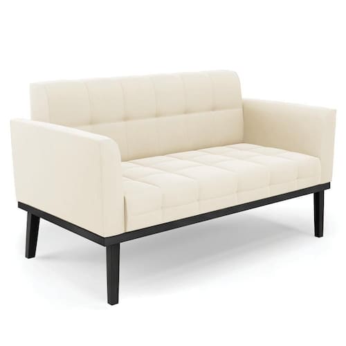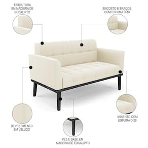Querida por muitos pela beleza e conforto que proporciona, sua versatilidade dá a liberdade de poder usar na sua Sala De Estar, recepção e onde mais desejar! Você vai adorar o Sofá Namoradeira Base Madeira Preto Ana Veludo Bege, da Ibiza!