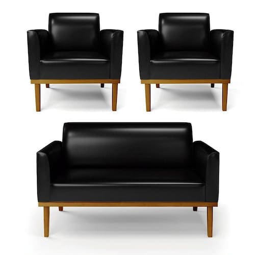 Sofá Namoradeira Com 2 Poltronas Base De Madeira Fixa Castanho Marisa Corano D03 - D?rossi Cor Preto