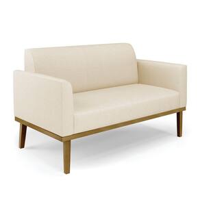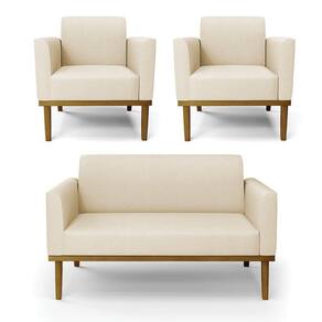 Sofá Namoradeira Com 2 Poltronas Base De Madeira Fixa Castanho Marisa Linho Bege A19 D03 - D?rossi
