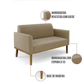 Sofá Namoradeira Com 2 Poltronas Base De Madeira Fixa Castanho Marisa Suede Marrom Rato D03 - D?rossi
