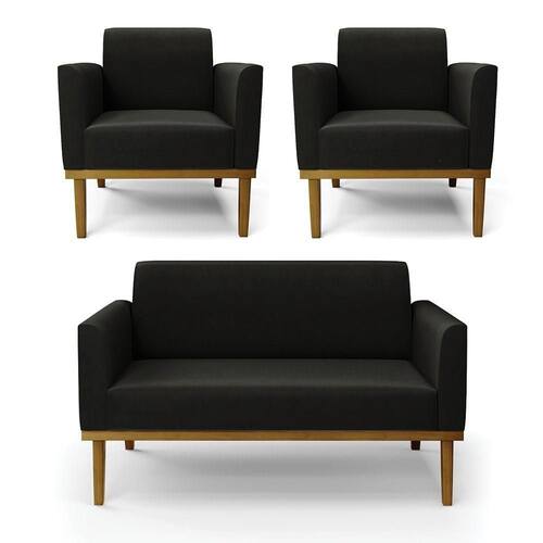 Sofá Namoradeira Com 2 Poltronas Base De Madeira Fixa Castanho Marisa Suede Preto D03 - D?rossi