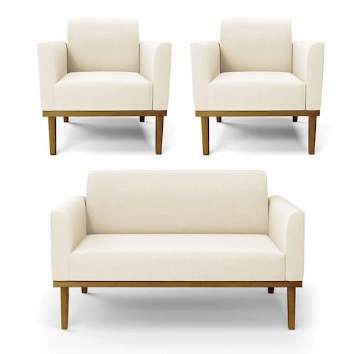 Todo mundo gosta de um ambiente bem decorado, e se for melhor ainda não é mesmo? A D?Rossi, além de entregar beleza, qualidade e confiança aos clientes, ela dispõe das melhores opções em produtos, disponíveis no mercado! Se você quer um produto sofisticado, opte pelo Sofá Namoradeira com Poltrona Marisa. Este kit dispõe de um tom lindo no Bege, uma cor leve, neutra e delicada que combina com qualquer estilo de decoração. Ele fica perfeito na sala, escritório, quarto, varanda coberta e onde mais preferir! Sua estrutura é feita em madeira reforçada de eucalipto proveniente de reflorestamento. No assento/encosto contém um revestimento no tecido Veludo, com estofamento em espuma prorelax D-23, garantindo maior conforto ao usuário. A sustentação da peça é dada pela Base de Madeira Fixa Castanho, garantindo uma resistência melhor, para relaxar o dia todo com mais comodidade. O Sofá Namoradeira com Poltrona Marisa é ideal, para dar aquele realce que seu ambiente precisa. Tenho certeza que, esse móvel é a melhor compra que você irá fazer. Garanta já seu Kit e se acomode da melhor maneira possível! Dimensões da Sofá Namoradeira: Altura total: 81 cm Largura total: 114 cm Profundidade total: 64 cm Altura do encosto: 36 cm Largura do assento: 96 cm Profundidade do assento: 48 cm Altura do chão ao assento: 45 cm Espessura do assento: 18 cm Tamanho dos pés: 30 cm Espessura do braço: 9 cm Peso: 24 kg Dimensões da Poltrona: Altura total: 81 cm Largura total: 64 cm Profundidade total: 64 cm Altura do encosto: 36 cm Largura do assento: 47 cm Profundidade do assento: 48 cm Altura do chão ao assento: 45 cm Espessura do assento: 18 cm Tamanho dos pés: 30 cm Espessura do braço: 9 cm Peso: 18 kg Especificações do Produto Estrutura: Madeira Eucalipto Espuma: D-23 Tecido: Veludo Tipo de pés: Base de Madeira Fixa Castanho Peso suportado: Até 120 Kg Garantia: 90 dias contra de fabricação Montagem: O produto vai montado, apenas parafusar a base Instruções de limpeza: Utilizar um pano limpo e levemente úmido Você irá receber: 01 Sofá Namoradeira e 02 Poltronas - Entregue em: 03 Volumes Observações Relevantes - Todos os produtos vão embalados com total ; - As cores dos produtos podem sofrer alterações dependendo do seu monitor; - Para futuras compras, não garantimos a mesma tonalidade de cor, pois existe variação a cada lote do fabricante do tecido; - As imagens são meramente ilustrativas, não acompanham objetos de decoração e eletros; - Confira as dimensões do produto no momento da compra e certifique-se de que passará normalmente por escadas, elevadores, portas e corredores; - Importante: Por se tratar de estofado as medidas podem ter uma pequena variação em até 3 cm; - Não nos responsabilizamos no ato da por montagens, desmontagens, instalações de produtos; - Não nos responsabilizamos no ato da por subir escadas, elevadores, nem utilização de guinchos ou equipamentos similares para acesso a pisos superiores em apartamentos; - A do produto é realizada em todo território , até onde as rodovias alcançam, fluviais ou aéreas devem ser cotadas a parte; - Observando as orientações acima, evita-se futuros desagrados ou imprevistos com a do produto. Havendo despesas adicionais, serão de responsabilidade do cliente;
