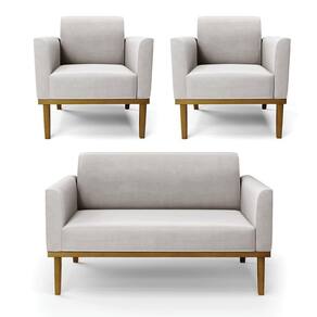 Sofá Namoradeira Com 2 Poltronas Base De Madeira Fixa Castanho Marisa Veludo D03 - D?rossi Cor Cinza
