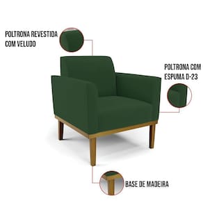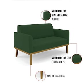 Sofá Namoradeira Com 2 Poltronas Base De Madeira Fixa Castanho Marisa Veludo D03 - D?rossi Cor Verde