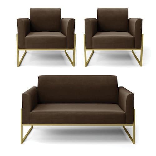 Você irá receber: 01 Sofá Namoradeira e 02 Poltronas - Entregue em: 03 Volumes