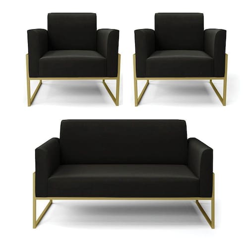 Você irá receber: 01 Sofá Namoradeira e 02 Poltronas - Entregue em: 03 Volumes