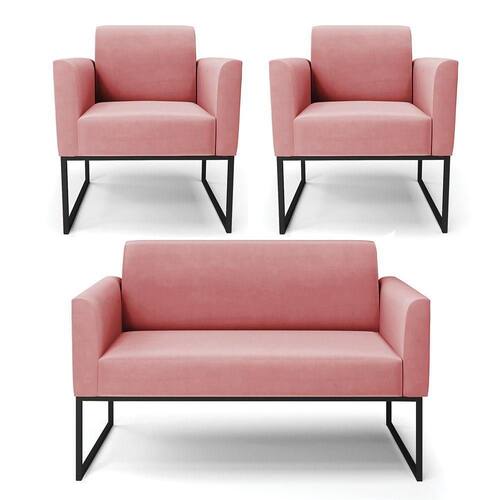 Sofá Namoradeira Com 2 Poltronas Base Industrial Preto Marisa Suede Rosê