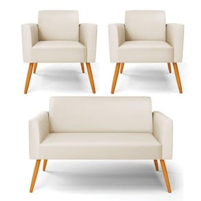 Sofá Namoradeira com 2 Poltronas Pés Palito Castanho Marisa Corino Bege D03 - D`Rossi