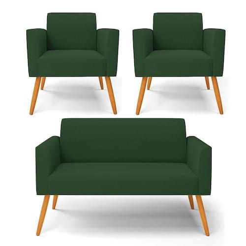 Todo mundo gosta de um ambiente bem decorado, e se for novidade melhor ainda não é mesmo? A D'Rossi, além de entregar beleza, qualidade e confiança aos clientes, ela dispõe das melhores opções em produtos, disponíveis no mercado! Se você quer um produto sofisticado, opte pelo Sofá Namoradeira com 2 Poltronas Marisa. Este kit dispõe de um tom lindo no Verde, uma cor leve, neutra e delicada que combina com qualquer estilo de decoração. Ele fica perfeito na sala, escritório, quarto, varanda coberta e onde mais preferir! Sua estrutura é feita em madeira reforçada de eucalipto proveniente de reflorestamento. No assento/encosto contém um revestimento no tecido Veludo, com estofamento em espuma prorelax D-23, garantindo maior conforto ao usuário. A sustentação da peça é dada pelos Pés Palito Castanho, garantindo uma resistência melhor, para relaxar o dia todo com mais comodidade. O Sofá Namoradeira com 2 Poltronas Marisa é ideal, para dar aquele realce que seu ambiente precisa. Tenho certeza que, esse móvel é a melhor compra que você irá fazer. Garanta já seu Kit e se acomode da melhor maneira possível!