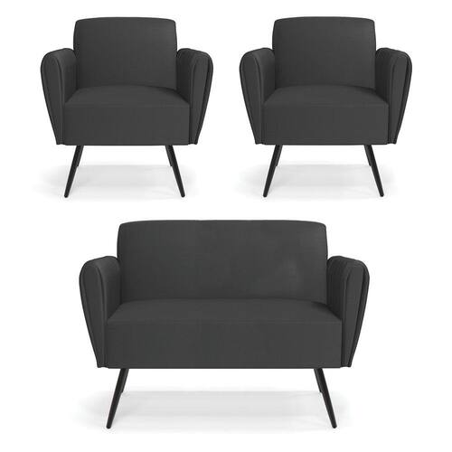 Só aqui na D'Rossi você encontra a decoração que você merece, com a praticidade que você precisa! O Sofá Namoradeira com Poltrona Bruna é uma peça de mobiliário moderna e elegante que pode ser usada em uma variedade de ambientes! Fica perfeita na sala, escritório, quarto, varanda coberta e onde mais preferir! Um móvel super reforçado, que possui uma estrutura em madeira de reflorestamento, ideal para garantir mais segurança e comodidade ao usuário. Revestido no Corino Preto, seu estofamento é feito em espuma D-23 um material de alta qualidade, ideal para deixar o assento firme e mais resistente. Os pés palito de ferro adicionam um toque moderno e elegante à mobilia, oferecendo maior segurança e um visual de enriquecer qualquer espaço. Além do mais, a braças da poltrona possui detalhes sutis e discretos com frisos no tecido, que oferecem uma aparência extremamente sofisticada à peça. O Sofá Namoradeira com Poltrona Bruna é uma excelente opção para quem deseja adicionar um toque de estilo e luxuosidade a qualquer cômodo. Se você está procurando por um móvel confortável e elegante, este conjunto é a escolha perfeita para você.