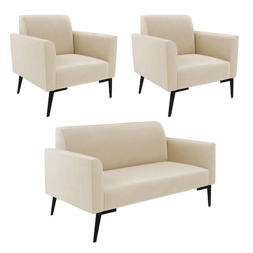 Sofá Namoradeira Com 2 Poltronas Pés Villach Marisa Suede D03 - D\\'rossi Cor Bege