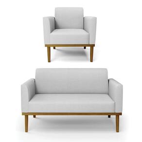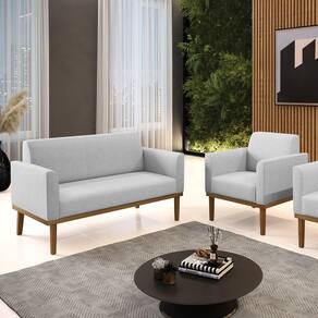 Sofá Namoradeira Com Poltrona Base De Madeira Fixa Castanho Marisa Linho Cinza A05 D03 - D?rossi