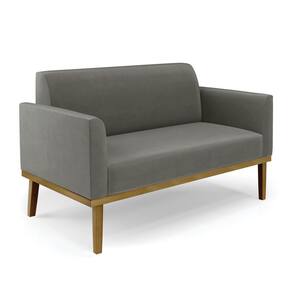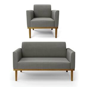 Sofá Namoradeira Com Poltrona Base De Madeira Fixa Castanho Marisa Suede Grafite D03 - D?rossi