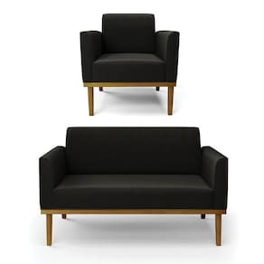 Sofá Namoradeira Com Poltrona Base De Madeira Fixa Castanho Marisa Suede Preto D03 - D?rossi