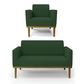 Todo mundo gosta de um ambiente bem decorado, e se for melhor ainda não é mesmo? A D?Rossi, além de entregar beleza, qualidade e confiança aos clientes, ela dispõe das melhores opções em produtos, disponíveis no mercado! Se você quer um produto sofisticado, opte pelo Sofá Namoradeira com Poltrona Marisa. Este kit dispõe de um tom lindo no Verde, uma cor leve, neutra e delicada que combina com qualquer estilo de decoração. Ele fica perfeito na sala, escritório, quarto, varanda coberta e onde mais preferir! Sua estrutura é feita em madeira reforçada de eucalipto proveniente de reflorestamento. No assento/encosto contém um revestimento no tecido Veludo, com estofamento em espuma prorelax D-23, garantindo maior conforto ao usuário. A sustentação da peça é dada pela Base de Madeira Fixa Castanho, garantindo uma resistência melhor, para relaxar o dia todo com mais comodidade. O Sofá Namoradeira com Poltrona Marisa é ideal, para dar aquele realce que seu ambiente precisa. Tenho certeza que, esse móvel é a melhor compra que você irá fazer. Garanta já seu Kit e se acomode da melhor maneira possível! Dimensões da Sofá Namoradeira: Altura total: 81 cm Largura total: 114 cm Profundidade total: 64 cm Altura do encosto: 36 cm Largura do assento: 96 cm Profundidade do assento: 48 cm Altura do chão ao assento: 45 cm Espessura do assento: 18 cm Tamanho dos pés: 30 cm Espessura do braço: 9 cm Peso: 24 kg Dimensões da Poltrona: Altura total: 81 cm Largura total: 64 cm Profundidade total: 64 cm Altura do encosto: 36 cm Largura do assento: 47 cm Profundidade do assento: 48 cm Altura do chão ao assento: 45 cm Espessura do assento: 18 cm Tamanho dos pés: 30 cm Espessura do braço: 9 cm Peso: 18 kg Especificações do Produto Estrutura: Madeira Eucalipto Espuma: D-23 Tecido: Veludo Tipo de pés: Base de Madeira Fixa Castanho Peso suportado: Até 120 Kg Garantia: 90 dias contra de fabricação Montagem: O produto vai montado, apenas parafusar a base Instruções de limpeza: Utilizar um pano limpo e levemente úmido Você irá receber: 01 Sofá Namoradeira e 01 Poltrona - Entregue em: 02 Volumes Observações Relevantes - Todos os produtos vão embalados com total ; - As cores dos produtos podem sofrer alterações dependendo do seu monitor; - Para futuras compras, não garantimos a mesma tonalidade de cor, pois existe variação a cada lote do fabricante do tecido; - As imagens são meramente ilustrativas, não acompanham objetos de decoração e eletros; - Confira as dimensões do produto no momento da compra e certifique-se de que passará normalmente por escadas, elevadores, portas e corredores; - Importante: Por se tratar de estofado as medidas podem ter uma pequena variação em até 3 cm; - Não nos responsabilizamos no ato da por montagens, desmontagens, instalações de produtos; - Não nos responsabilizamos no ato da por subir escadas, elevadores, nem utilização de guinchos ou equipamentos similares para acesso a pisos superiores em apartamentos; - A do produto é realizada em todo território , até onde as rodovias alcançam, fluviais ou aéreas devem ser cotadas a parte; - Observando as orientações acima, evita-se futuros desagrados ou imprevistos com a do produto. Havendo despesas adicionais, serão de responsabilidade do cliente;