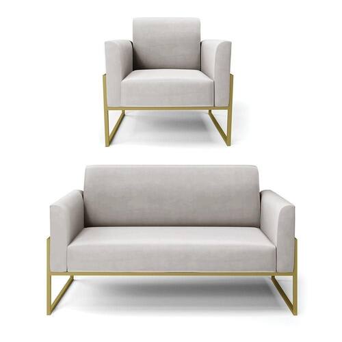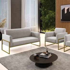 Todo mundo gosta de um ambiente bem decorado, e se for novidade melhor ainda não é mesmo? A DRossi, além de entregar beleza, qualidade e confiança aos clientes, ela dispõe das melhores opções em produtos, disponíveis no mercado! Se você quer um produto sofisticado, opte pelo Sofá Namoradeira com Poltrona Marisa. Este kit dispõe de um tom lindo no Cinza, uma cor leve, neutra e delicada que combina com qualquer estilo de decoração. Ele fica perfeito na sala, escritório, quarto, varanda coberta e onde mais preferir! Sua estrutura é feita em madeira reforçada de eucalipto proveniente de reflorestamento. No assento/encosto contém um revestimento no tecido Veludo, com estofamento em espuma prorelax D-23, garantindo maior conforto ao usuário. A sustentação da peça é dada pela Base Industrial Alta Dourado, garantindo uma resistência melhor, para relaxar o dia todo com mais comodidade. O Sofá Namoradeira com Poltrona Marisa é ideal, para dar aquele realce que seu ambiente precisa. Tenho certeza que, esse móvel é a melhor compra que você irá fazer. Garanta já seu Kit e se acomode da melhor maneira possível! Dimensões da Sofá Namoradeira: Altura total: 81 cm Largura total: 114cm Profundidade total: 64 cm Altura do encosto: 36 cm Largura do assento: 96 cm Profundidade do assento: 48 cm Altura do chão ao assento: 45 cm Espessura do assento: 18 cm Tamanho dos pés: 30 cm Espessura do braço: 9 cm Peso: 22 kg Dimensões da Poltrona: Altura total: 81 cm Largura total: 64 cm Profundidade total: 64 cm Altura do encosto: 36 cm Largura do assento: 47 cm Profundidade do assento: 48 cm Altura do chão ao assento: 45 cm Espessura do assento: 18 cm Tamanho dos pés: 30 cm Espessura do braço: 9 cm Peso: 16 kg Especificações do Produto Estrutura: Madeira Eucalipto Espuma: D-23 Tecido: Veludo Tipo de pés: Base Industrial Alta Dourado Peso suportado: Até 120 Kg Garantia: 90 dias contra defeito de fabricação Montagem: O produto vai montado, apenas parafusar a base Instruções de limpeza: Utilizar um pano limpo e levemente úmido Você irá receber: 01 Sofá Namoradeira e 01 Poltrona - Entregue em: 02 Volumes Observações Relevantes - Todos os produtos vão embalados com total segurança; - As cores dos produtos podem sofrer alterações dependendo do seu monitor; - Para futuras compras, não garantimos a mesma tonalidade de cor, pois existe variação a cada lote do fabricante do tecido; - As imagens são meramente ilustrativas, não acompanham objetos de decoração e eletros; - Confira as dimensões do produto no momento da compra e certifique-se de que passará normalmente por escadas, elevadores, portas e corredores; - Importante: Por se tratar de estofado as medidas podem ter uma pequena variação em até 3 cm; - Não nos responsabilizamos no ato da entrega por montagens, desmontagens, instalações de produtos; - Não nos responsabilizamos no ato da entrega por subir escadas, elevadores, nem utilização de guinchos ou equipamentos similares para acesso a pisos superiores em apartamentos; - A entrega do produto é realizada em todo território nacional, até onde as rodovias alcançam, entregas fluviais ou aéreas devem ser cotadas a parte; - Observando as orientações acima, evita-se futuros desagrados ou imprevistos com a entrega do produto. Havendo despesas adicionais, serão de responsabilidade do cliente;