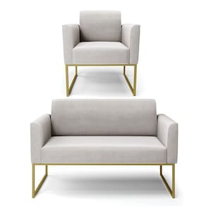 Todo mundo gosta de um ambiente bem decorado, e se for novidade melhor ainda não é mesmo? A DRossi, além de entregar beleza, qualidade e confiança aos clientes, ela dispõe das melhores opções em produtos, disponíveis no mercado! Se você quer um produto sofisticado, opte pelo Sofá Namoradeira com Poltrona Marisa. Este kit dispõe de um tom lindo, uma cor leve, neutra e delicada que combina com qualquer estilo de decoração. Ele fica perfeito na sala, escritório, quarto, varanda coberta e onde mais preferir! Sua estrutura é feita em madeira reforçada de eucalipto proveniente de reflorestamento. No assento/encosto contém um revestimento no tecido Veludo, com estofamento em espuma prorelax D-23, garantindo maior conforto ao usuário. A sustentação da peça é dada pelos Base Industrial Dourado, garantindo uma resistência melhor, para relaxar o dia todo com mais comodidade. O Sofá Namoradeira com Poltrona Marisa é ideal, para dar aquele realce que seu ambiente precisa. Tenho certeza que, esse móvel é a melhor compra que você irá fazer. Garanta já seu Kit e se acomode da melhor maneira possível!