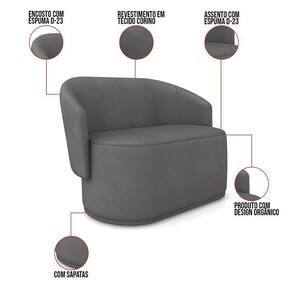 Sofá Namoradeira Com Poltrona E Puff Orgânico Sala Malu Sintético M11 - D`rossi Grafite - Cinza