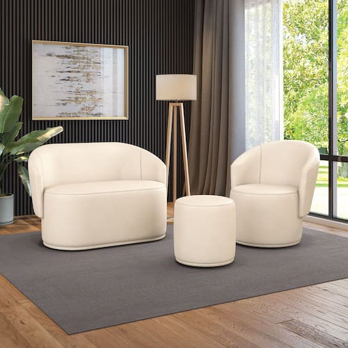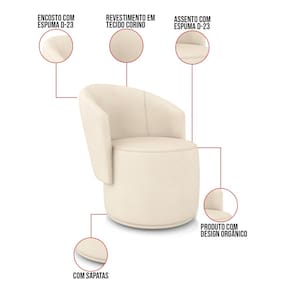 Sofá Namoradeira com Poltrona e Puff Orgânico Sala Malu Sintético M11 - D`Rossi - Bege