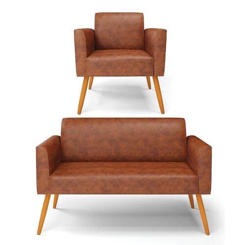 Você irá receber: 01 Sofá Namoradeira e 01 Poltrona - Entregue em: 02 Volumes