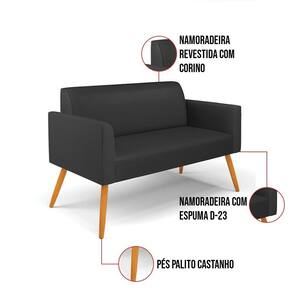 Todo mundo gosta de um ambiente bem decorado, e se for novidade melhor ainda não é mesmo? A D'Rossi, além de entregar beleza, qualidade e confiança aos clientes, ela dispõe das melhores opções em produtos, disponíveis no mercado! Se você quer um produto sofisticado, opte pelo Sofá Namoradeira Marisa. Ele dispõe de um tom lindo no Preto, uma cor leve, neutra e delicada que combina com qualquer estilo de decoração. Esta mobília fica perfeita na sala, escritório, quarto, varanda coberta e onde mais preferir! Sua estrutura é feita em madeira reforçada de eucalipto proveniente de reflorestamento. No assento/encosto contém um revestimento no tecido Corino, com estofamento em espuma prorelax D-23, garantindo maior conforto ao usuário. A sustentação da peça é dada pelos Pés Palito Castanho, garantindo uma resistência melhor, para relaxar o dia todo com mais comodidade. O Sofá Namoradeira Marisa é ideal, para dar aquele realce que seu ambiente precisa. Tenho certeza que, esse móvel é a melhor compra que você irá fazer. Garanta já seu Sofá Namoradeira e se acomode da melhor maneira possível!