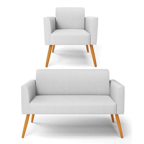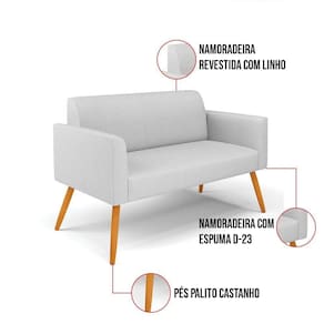 Sofá Namoradeira Com Poltrona Pés Palito Castanho Marisa Linho D03 - D\`rossi Cor A05 Cinza - Blush