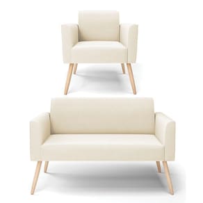 Sofá Namoradeira Com Poltrona Pés Palito Natural Marisa Veludo D03 - D\\'rossi Cor Bege