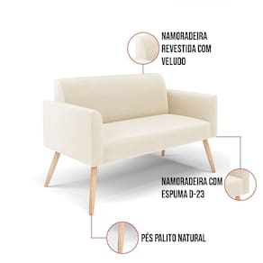 Sofá Namoradeira Com Poltrona Pés Palito Natural Marisa Veludo D03 - D\`rossi Cor Bege