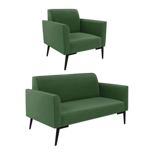 Todo mundo gosta de um ambiente bem decorado, e se for novidade melhor ainda não é mesmo? A D'Rossi, além de entregar beleza, qualidade e confiança aos clientes, ela dispõe das melhores opções em produtos, disponíveis no mercado! Se você quer um produto sofisticado, opte pelo Sofá Namoradeira com Poltrona Marisa. Este kit dispõe de um tom lindo no Verde, uma cor leve, neutra e delicada que combina com qualquer estilo de decoração. Ele fica perfeito na sala, escritório, quarto, varanda coberta e onde mais preferir! Sua estrutura é feita em madeira reforçada de eucalipto proveniente de reflorestamento. No assento/encosto contém um revestimento no tecido Corano, com estofamento em espuma prorelax D-23, garantindo maior conforto ao usuário. A sustentação da peça é dada pela Base Industrial Alta Preto, garantindo uma resistência melhor, para relaxar o dia todo com mais comodidade. O Sofá Namoradeira com Poltrona Marisa é ideal, para dar aquele realce que seu ambiente precisa. Tenho certeza que, esse móvel é a melhor compra que você irá fazer. Garanta já seu Kit e se acomode da melhor maneira possível!