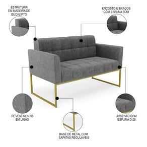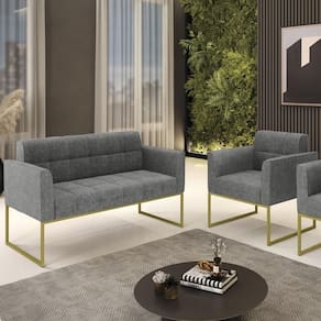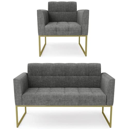 O Sofá Namoradeira e 1 Poltrona Base Industrial Dourado Ana Linho Grafite, da Ibiza é o conjunto ideal para quem busca beleza, conforto e versatilidade. Você pode usar na sua Sala De Estar, recepção ou qualquer outro ambiente que desejar.