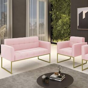 O Sofá Namoradeira e 1 Poltrona Base Industrial Dourado Ana Suede Rosa Bebê, da Ibiza é o conjunto ideal para quem busca beleza, conforto e versatilidade. Você pode usar na sua Sala De Estar, recepção ou qualquer outro ambiente que desejar.