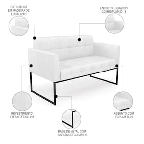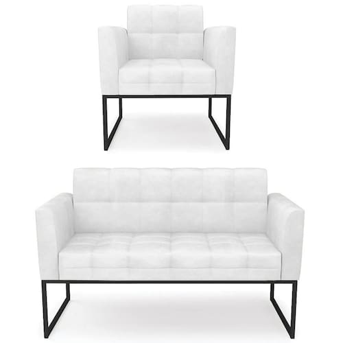 O Sofá Namoradeira e 1 Poltrona Base Industrial Preto Ana Sintético PU Branco, da Ibiza é o conjunto ideal para quem busca beleza, conforto e versatilidade. Você pode usar na sua Sala De Estar, recepção ou qualquer outro ambiente que desejar.