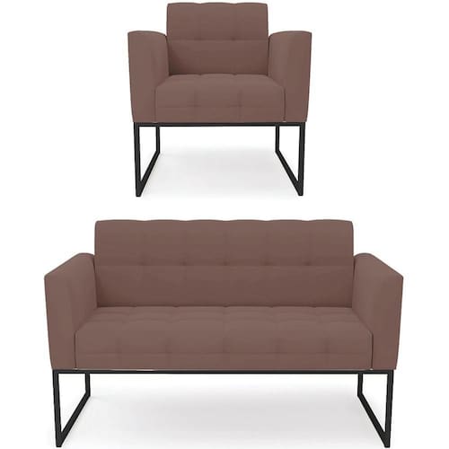 O Sofá Namoradeira e a Poltrona Decorativa são revestidos em Veludo, que é fácil de limpar e valoriza o design das peças. Eles têm braços e encosto em espuma D-18 e assento em espuma D-26, que oferecem firmeza e aconchego para você relaxar. A base industrial é um detalhe charmoso, que dá um toque moderno e sofisticado ao conjunto. O kit tem uma estrutura resistente e suporta até 120 kg cada peça. A montagem é simples, pois as peças já vêm prontas, bastando fixar a base com os parafusos que acompanham o produto. A limpeza é prática, pois basta usar um pano limpo e levemente úmido, sem produtos abrasivos, para manter o seu kit sempre em bom estado. Hora de transformar seu ambiente com a Namoradeira 2 Lugares e a Poltrona para Sala deixando ainda mais confortável e estiloso.