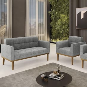 O Sofá Namoradeira e 1 Poltrona Base Madeira Castanho Ana Linho Grafite, da Ibiza é o conjunto ideal para quem busca beleza, conforto e versatilidade. Você pode usar na sua Sala De Estar, recepção ou qualquer outro ambiente que desejar.