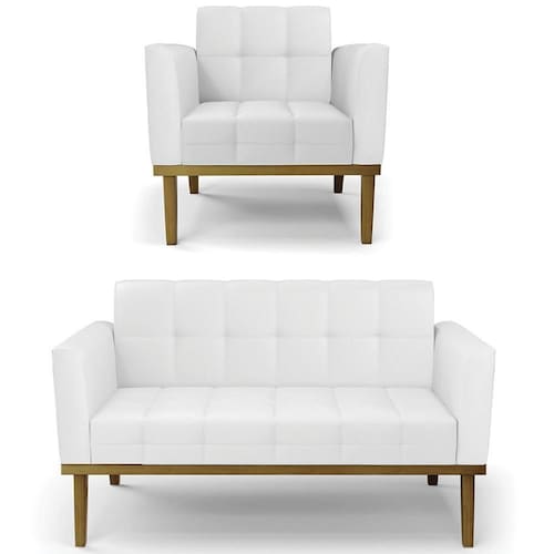 O Sofá Namoradeira e 1 Poltrona Base Madeira Castanho Ana Sintético Branco, da Ibiza é o conjunto ideal para quem busca beleza, conforto e versatilidade. Você pode usar na sua Sala De Estar, recepção ou qualquer outro ambiente que desejar.