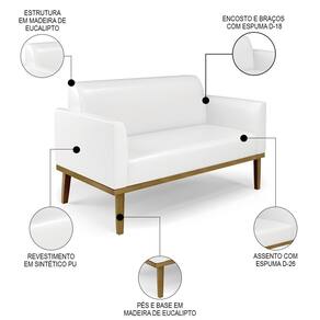 O Sofá Namoradeira e 1 Poltrona Base Madeira Castanho Maressa Sintético PU Branco, da Ibiza é o conjunto ideal para quem busca beleza, conforto e versatilidade. Você pode usar na sua Sala De Estar, recepção ou qualquer outro ambiente que desejar.