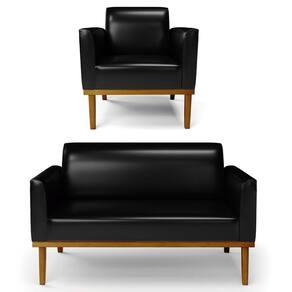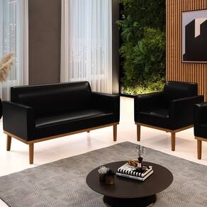 O Sofá Namoradeira e 1 Poltrona Base Madeira Castanho Maressa Sintético PU Preto, da Ibiza é o conjunto ideal para quem busca beleza, conforto e versatilidade. Você pode usar na sua Sala De Estar, recepção ou qualquer outro ambiente que desejar.