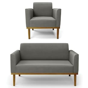 O Sofá Namoradeira e 1 Poltrona Base Madeira Castanho Maressa Suede Grafite, da Ibiza é o conjunto ideal para quem busca beleza, conforto e versatilidade. Você pode usar na sua Sala De Estar, recepção ou qualquer outro ambiente que desejar.
