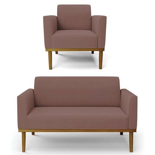 O Sofá Namoradeira e 1 Poltrona Base Madeira Castanho Maressa Veludo Rosê, da Ibiza é o conjunto ideal para quem busca beleza, conforto e versatilidade. Você pode usar na sua Sala De Estar, recepção ou qualquer outro ambiente que desejar.