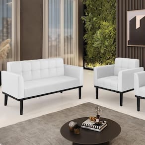 O Sofá Namoradeira e 1 Poltrona Base Madeira Preto Ana Sintético Branco, da Ibiza é o conjunto ideal para quem busca beleza, conforto e versatilidade. Você pode usar na sua Sala De Estar, recepção ou qualquer outro ambiente que desejar.