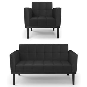 O Sofá Namoradeira e 1 Poltrona Base Madeira Preto Ana Sintético Preto, da Ibiza é o conjunto ideal para quem busca beleza, conforto e versatilidade. Você pode usar na sua Sala De Estar, recepção ou qualquer outro ambiente que desejar.