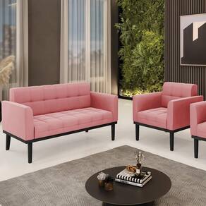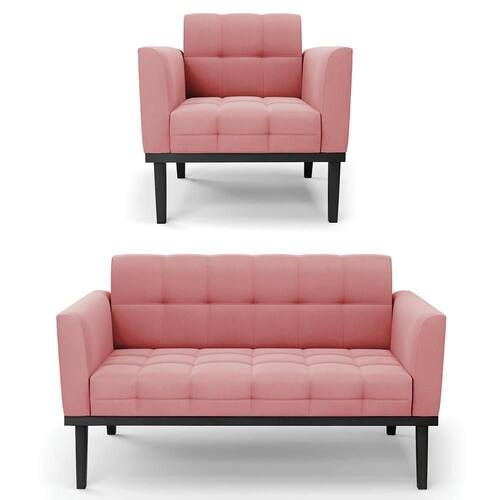 O Sofá Namoradeira e 1 Poltrona Base Madeira Preto Ana Suede Rosê, da Ibiza é o conjunto ideal para quem busca beleza, conforto e versatilidade. Você pode usar na sua Sala De Estar, recepção ou qualquer outro ambiente que desejar.