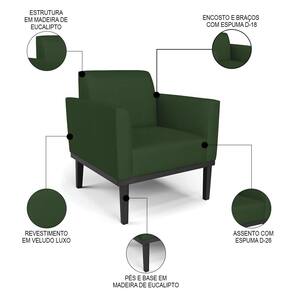 O Sofá Namoradeira e 1 Poltrona Base Madeira Preto Maressa Veludo Luxo Verde, da Ibiza é o conjunto ideal para quem busca beleza, conforto e versatilidade. Você pode usar na sua Sala De Estar, recepção ou qualquer outro ambiente que desejar.