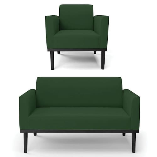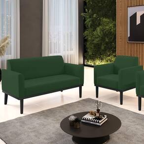 O Sofá Namoradeira e 1 Poltrona Base Madeira Preto Maressa Veludo Verde, da Ibiza é o conjunto ideal para quem busca beleza, conforto e versatilidade. Você pode usar na sua Sala De Estar, recepção ou qualquer outro ambiente que desejar.