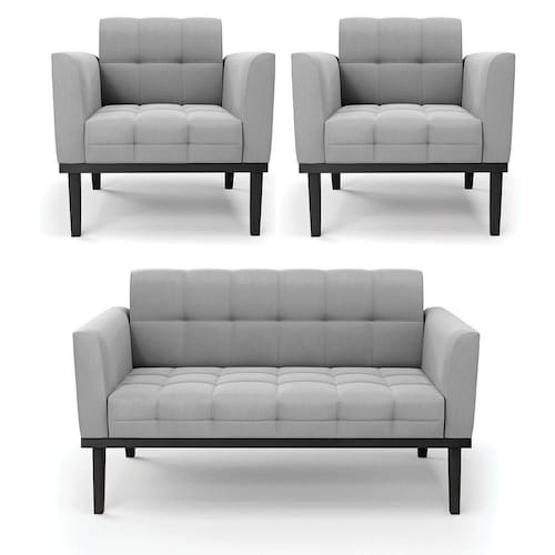 Você irá receber: 01 Sofá Namoradeira e 02 Poltronas - Entregue em: 03 Volumes