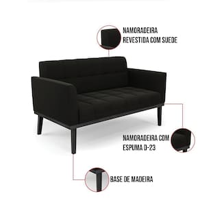 Você gosta de colecionar vários momentos memoráveis com sua família e amigos? Que tal recebê-los, com móveis de altíssima qualidade que só a D'Rossi tem? O Sofá Sofá Namoradeira e Poltrona Elisa é adequado para você! Seu design retrô é a grande tendência do momento. Pode ser em diversos espaços da casa, em salas, hall de entrada, quartos, cozinhas, varanda, sacada, escritório, dentre outros. Contém as seguintes características: A estrutura é feita de madeira de Eucalipto 100% de reflorestamento, e a Base de Madeira Fixa Preto, além de ser resistente e durável, suporta em média até 120 kg. Assento, encosto e braços, contém enchimento de espuma D-23 e é estofada em tecido Suede, que oferece muito conforto e resistência ao sentar, com aquela sensação de maciez e aconchego. Possui também, detalhes de costura no encosto e assento, resultando em um acabamento impecável, conferindo muito mais valor e elegância ao seu espaço. Para complementar a decoração com esse lindo Kit Sofá Namoradeira e Poltrona Elisa, a dica é utilizar mantas, almofadas ou vasinho de flor. E pronto, seu cantinho estará perfeito para descansar e relaxar! Aqui, você encontra várias opções, para que seus amigos e familiares se sintam acolhidos. Garanta já seu Kit Sofá Namoradeira e 2 Poltronas Elisa.