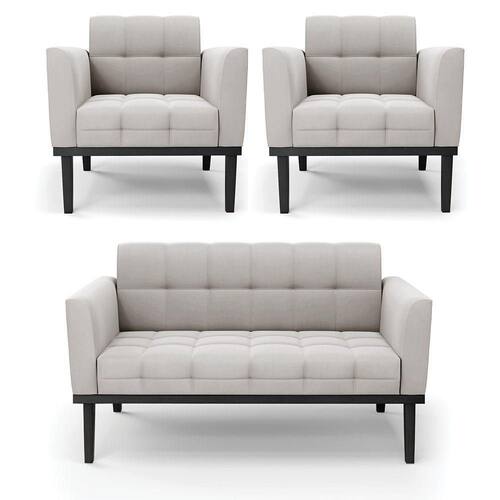 Você irá receber: 01 Sofá Namoradeira e 02 Poltronas - Entregue em: 03 Volumes