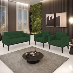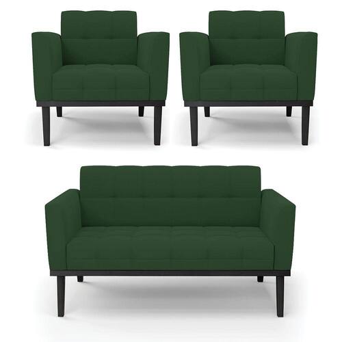 Sofá Namoradeira e 2 Poltronas Base de Madeira Preto Elisa Veludo Verde D03 - D`Rossi