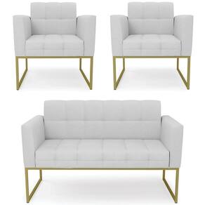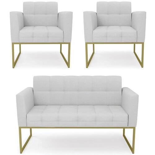 O Sofá Namoradeira e 2 Poltronas Base Industrial Dourado Ana Linho Cinza, da Ibiza é o conjunto ideal para quem busca beleza, conforto e versatilidade. Você pode usar na sua Sala De Estar, recepção ou qualquer outro ambiente que desejar.